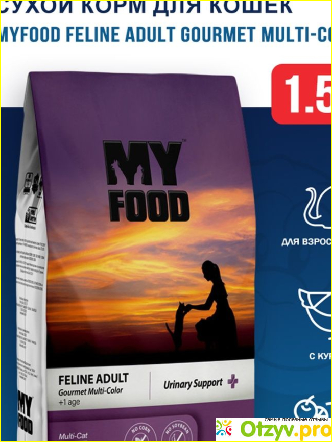 Хороший сухой корм на каждый день. Myfood Feline Adult Gourmet сухой корм для кошек с курицей - 1,5 кг