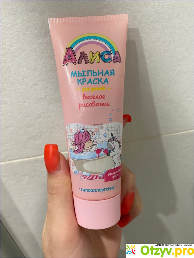 Эта мыльная краска вообще не рисует, от слова совсем, она сразу же начинает растекаться и никакие рисунки, к сожалению, не получаются. По текстуре краска похожа на жидкое мыло или гель для душа. Краска, к счастью, хорошо отмывается, не оставляет следов. Если честно- сплошное разочарование. Краска не выполняет свои функции.