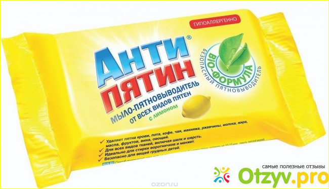 Это мыло имеет приятный аромат лимона, но так же в магазине это мыло можно встретить и с иными различными ароматизаторами. Анти Пятин прекрасно выводит различные пятна- даже такие сложновыводимые как вьевшаяся кровь и пятна от ягод и шоколада.