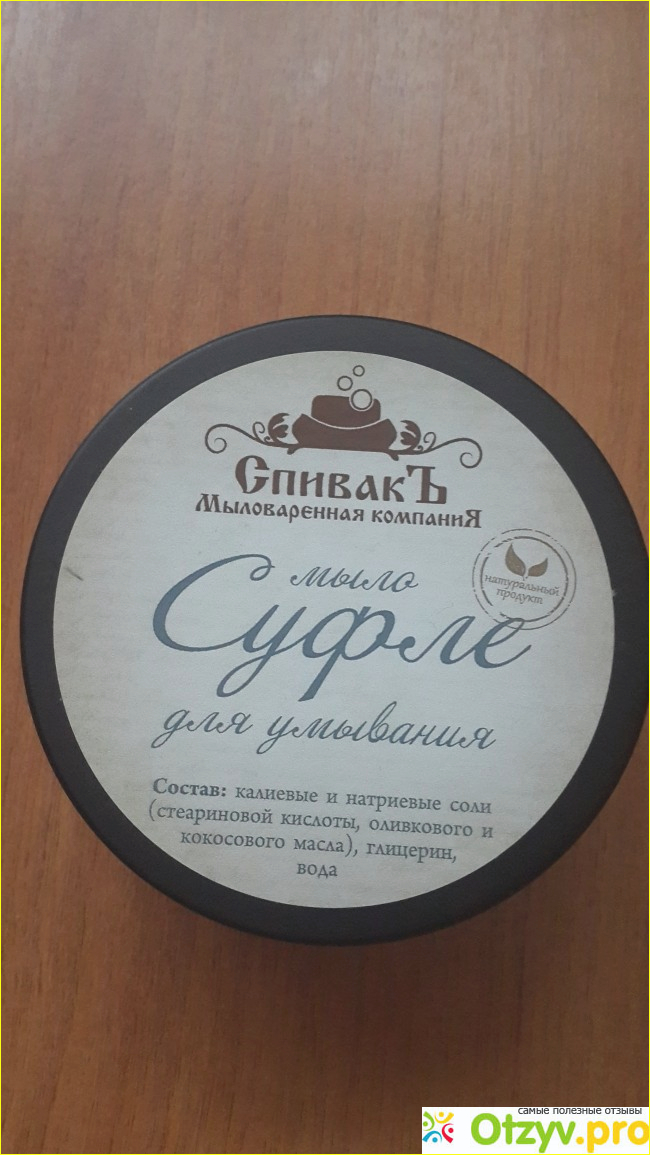 Мыло-суфле "Спивакъ" состоит из натриевых солей масел, стеариновой кислоты и глицерина.