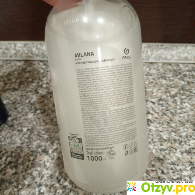 Вот именно большой объем и привлек меня в случае с мылом Grass Milana Жемчужное, ведь баночка со средством идет в объеме 1 л. и мыла хватит на долгое время.