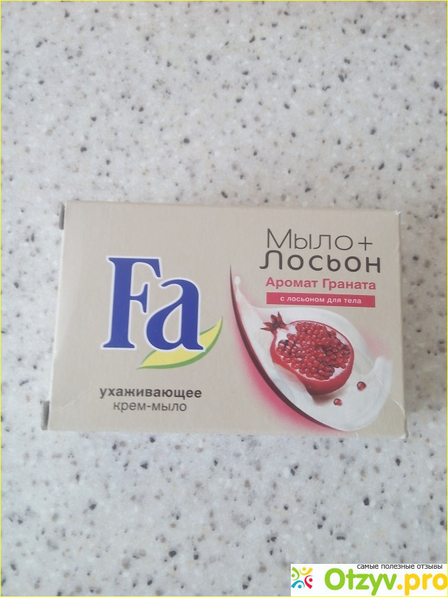 Постоянно покупаю мыло. Недавно купила мыло+лосьон Fa. Это ухаживающее крем - мыло с ароматом граната. Обладает двойным действием - очищает кожу и ухаживает за ней. Мыло очень хорошо пенится. Запах у него очень приятный. После его применения не нужны никакие другие средства для лица. Я не пользуюсь никакими кремами для лица. Этого мыла мне вполне достаточно, чтобы смыть косметику и очистить лицо. Мыло+лосьон Fa легко смывается.