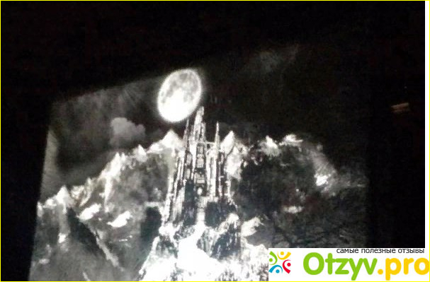 Екран на сцені перед початком вистави. У мене немає фотографій самого шоу, вірніше, не хорошої якості, тому такі спецефекти, постійний дим і вічна темрява на сцені - це практично неможливо зробити, але нам краще всього місця.