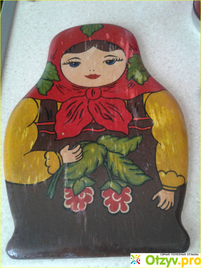 Однажды в канун праздника восьмого марта, подарил мне чудесную, замечательную досочку. Прекрасно, оформленный подарок. Небольшая наша русская матрешка. Лобзиком выточил форму, нанес карандашом нужные детали. Раскрасил краской, а сверху покрыл лаком.