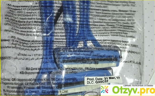 А на оборотной стороне пакета среди множества информации на куче иностранных языков, я еле нашла состав данного товара и его производителя. Сделаны станки из полистирола, абс-пластика, не указано в списке почему-то из чего лезвия, предположу, что нержавеющая сталь, но доподлинно неизвестно.