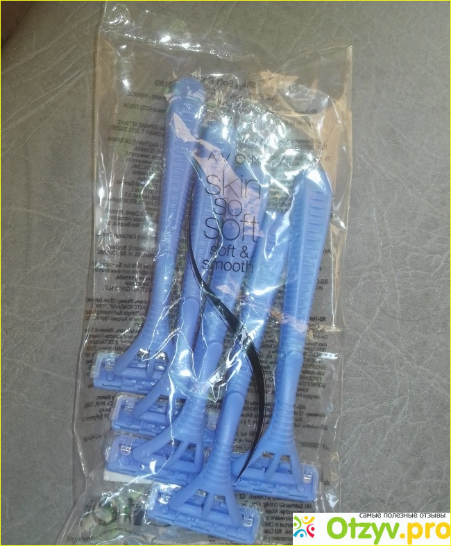 Упаковывается набор бритв Avon Skin so Soft в пластиковый, прозрачный пакет, который очень плотный и сильно шуршит. На лицевой стороне пакета написано название серии, в которой выпускаются эти бритвы.