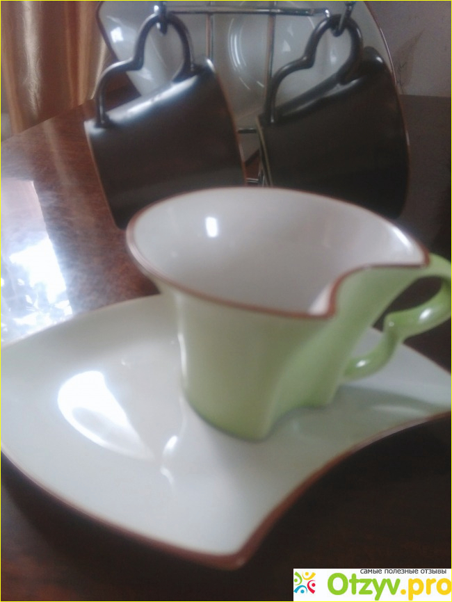 На мой взгляд, особую изюминку данному набору для кофе придаёт необычная форма чашечек и блюдец. Блюдечко у меня ассоциируется с листочком (во всяком случае, именно такое сравнение у меня вызывает форма блюдечка - очень похожа на листок)