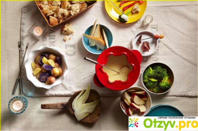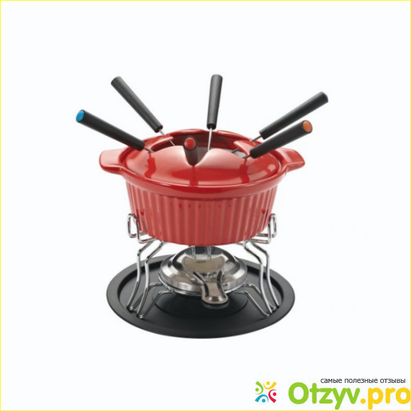 Красивая красная плошка с ручками — она не только удобна для приготовления пищи, но и становится маленьким и необычным украшением стола. Кстати, даже готовя фондю дома эту посудину можно поставить на стол и готовить блюдо таким образом, а не стоя около плиты.