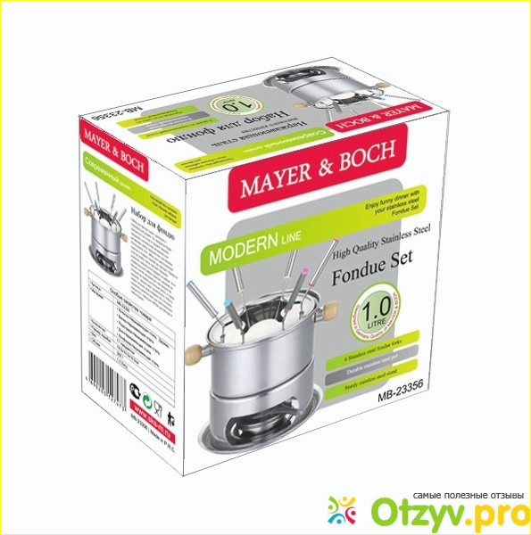 ну а теперь я вам хочу рассказать что же входит в набор для фондю Mayer&Boch MB-23356, а так же какими он характеристиками обладает.