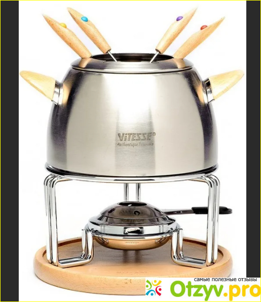 Набор для фондю VS Rivka VS-1866 действительно самая подходящая посуда для того, чтобы приготовить вкусные блюда из сыра, креветок, мяса.