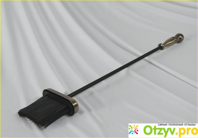 Совочек, кочерга и щетка, размещенные на одной целой подставке сделаны из стали, имеют черный цвет и покрыты составом, делающих их похожими на настоящий чугун. Все три предмета имеют длинные комфортные рукоятки и крючки для вешания.