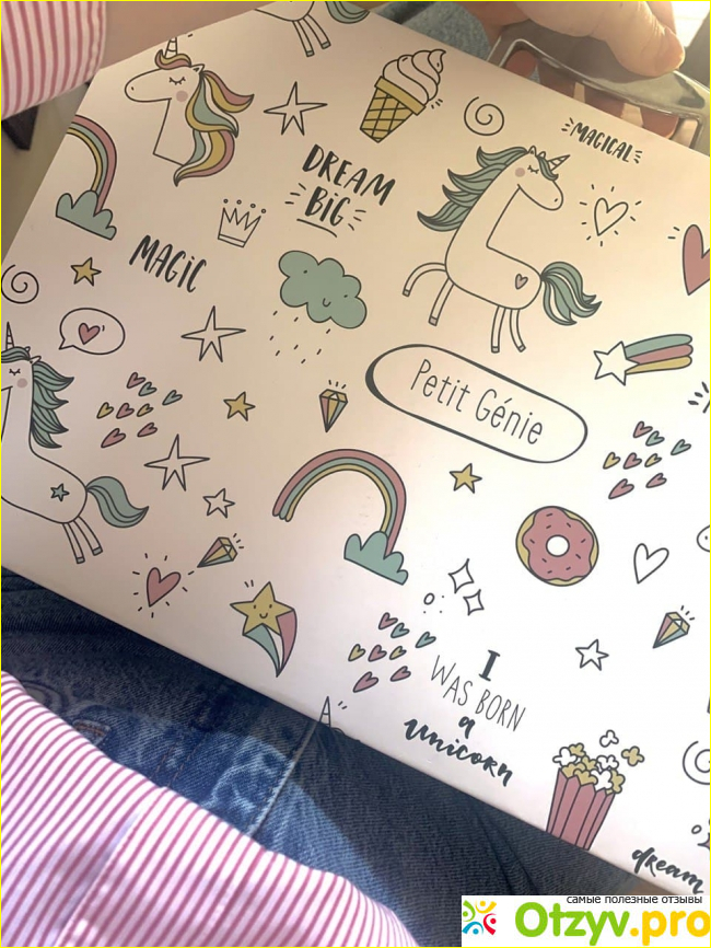 Вот такой очаровательный чемоданчик пришел нам с Вайлдберрис. Я даже не ожидала, что он такой крупный и в нем столько всего! Мне очень приглянулся дизайн, дочурка моя просто с ума сходит по единорогам, а тут столько волшебства на одном чемоданчике изображено. Она у меня их даже срисовывает, ну правда, очень милые персонажи.
