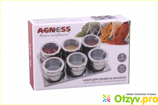 Все мы люди и очень сильно любим, когда все красиво и аккуратно со вкусом расставлено на кухне, исключением не будет являться и набор для специй, он к сожалению имеется далеко не в каждой семье, на это может быть масса причин, а также отговорок, к примеру таких, как у нас мало места на кухне, шкафчики сильно малы, для того чтобы найти место для шикарного набота для специй, пусть лучше все стоит в пакетиках одноразовых высыпается и портится, но это ведь неправильно и просто даже не красиво, особенно если долго не наводить порядок в своих специях, которые многие хранят в одноразовых пакетах, пора наводить порядки к новому году и избавляться от старых вещей в кухнях на столах, шкафах, лавок и прочих мест для хранения продуктов питания, которые используются на кухне. А говорить будем об удивительном наборе для специй, торгового производителя Agness 912-002.