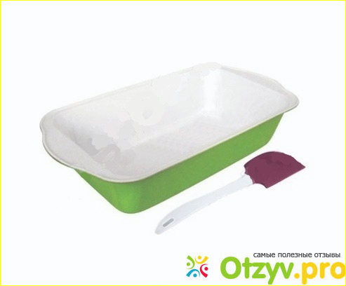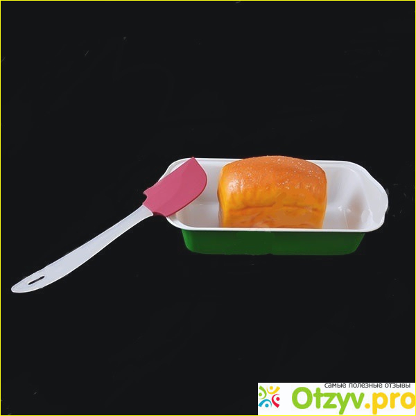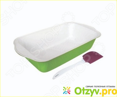 Название "набор для выпечки" на самом деле не ограничивает возможности этого набора только на выпечке как таковой. Да, в форме отлично получаются бисквитные кексы, коржи дл торта, пироги, манники,творожные запеканки и прочее из области выпечки. Но ведь в керамической форме можно готовить множество других блюд не связанных с выпечкой. К примеру лазанью, различные запеканки, жульен, запеченные отбивные, тушенные в духове тефтели да и еще сотни разных блюд которые я так сразу то и не вспомню. Когда я пеку в этой форме кес например, то дно на всякий случай смазываю тоненьким слоем сливочного масла. Так готовая выпечка легко отходит от посуды, не пригарает. Если готовлю запеканку из фарша или какие-нибудь тефтели, отбивные, то ичем посуду для этого не смазыва. Все отходит прекрасно и так, ничего не прилипает намертво. А широкая силиконовая лопатка поможет вынуть из формы свой кусочек пирога не расцарапав и не повредив при этом дно посуды. Лопатку эту кстати я использую тоже не только для этой формы. Она у меня теперь номер один в приготовлении любых блюд в антипригарной посуде. Очень удобно ею переворачивать котлетки на сковородке, перемешивать овощи которые тушаться и прочее. Силикон на много практичнее нежели пластиковые лопатки, которые при высоких температурах плавятся и металлических уж тем более (всем прекрасно известно что металлические столовые приборы и лопатки легко повреждают антипригарный слой).