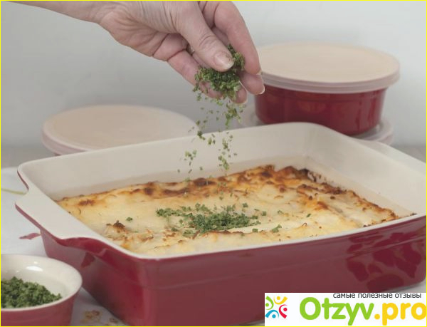 Вся пища, которая готовится в этой форме прогревается равномерно, поэтому ничто никогда не пригорает, и не сырое внутри, все запахи смешиваются между собой, блюда получаются очень ароматными и сочными.