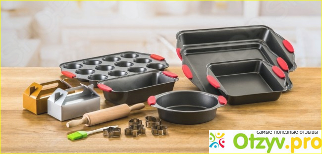 Причем люблю готовить не только сладкую выпечку, но еще и запекать мясо. В квартире есть множество разных плотиков, то они устарели и покрылись ржавчиной. Тогда я решила купить новые приборы. На одном из сайтов нашла целый набор из десяти элементов. Хотя цена немного кусалась, я все же заказала его и не пожалела об этом.