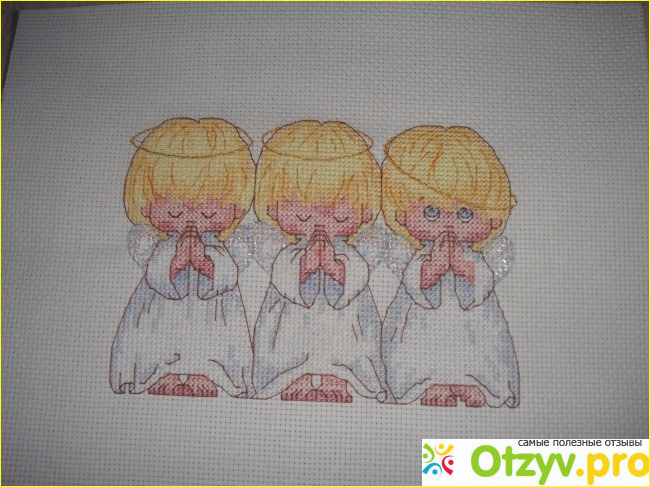 Рассказала подруге, она тоже сразу заказ в интернет-магазине сделала, но унеё работа медленнее продвигается, а я так хочу узнать сработает ли примета на ней или нет, надеюсь что да. Даже если просто, кто не верит ни в какие приметы, или просто так для себя могут вышить эту картинку, потому что ангелочки действительно