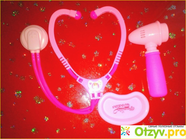Стратоскоп, конечно хлипкий и совершенно легкий он сразу отправился в дар племяннице так как у дочки есть со звуком и светом ее таким не удивишь. Инструмент, типа молоточек или уши смотреть, только без отверстия опять таки совершенно легкий и не нужный. А вот тарелочка нам пригодилась, как мисочка собачке.