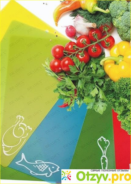 Раньше у нас была пара деревянных разделочных досок, и мы резали на них абсолютно все, и совершенно не запаривались. Но в последнее время я стала много читать о полезной и здоровой пище и узнала, что, например, для мяса должна быть отдельная доска, и фрукты на ней резать уже не рекомендуется, так как на них могут перейти микробы, которые могут остаться на доске после разделки сырого мяса. Да и, кроме того, наши деревянные доски уже порядком поизносились, от них даже уже начали отделяться мелкие щепки. Поэтому мы решили купить себе комплект красивых новых разделочных досок, которые были бы предназначены для каждого вида еды. Выбрали мы себе Набор досок разделочных Bradex TK 0174.