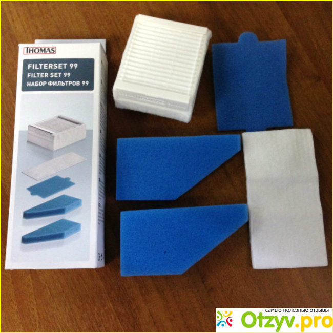 Набор фильтров Thomas P99 787241. Скажу честно, качество у них отличное. Кстати цена намного ниже, чем у других фирм. Для сравнения фильтры от бош стоят восемьсот пятьдесят шесть рублей, обычные фильтры стоят около четыреста тридцать рублей, томас стоит в пределах триста семидясети рублей. При этом их хватает намного дольше по времени использования. Они очень удобные также. Если рассмотрим их более детально, то сразу бросается то, что в наборе имеются аж пять фильтров. И как раз подходят для аква пэлесосов. Также в набор входит: EPA фильтр, микрофильтр, фильтр защиты двигателя, 2 фильтра аквасистемы. Их сразу берешь в руки, и видно, что они сделаны качественно. Также к ним прилагается инструкция, которая написана как на английском, так и на русском языках. Очень удобно, согласитесь. Кроме всего прочего, они не только хорошо подошли к нашему пэлесосу той же фирмы, томас. Но также и к маминому. У нее бош, тоже аква-пэлесос. Он намного меньше нашего по размерам. Но все равно, несмотря на свой маленький размер, набор фильтров томас подошел идеально. Кстати хочется оговориться, что не в каждом магазине они есть в наличии. Так, например, у нас в городе были только одном магазине. Поэтому еще два набора пришлось заказывать через интернет и ждать около двух недель, когда они придут в наш город. Поэтому мы заказываем сразу несколько наборов. Так получается не только дешевле, но и не надо бежать и искать их, когда другие засорились. Еще хочется добавить, что используя данный набор фильтров, можно забыть о мелкой пыли. У нас была такая проблема постоянно. После уборки аква-пэлесосом омтавались разводы, которые не исчезали, когда высыхал пол. А сейчас, используя данные фильтры от фирмы томас, нет никах разводов. Пол идеально чистый. Для нас это огромный плюс, так как у нас дома паркет а он требует тщательной уборки. Также удобно использовать для ковров, что я и делаю. Самое главное, что не вытекает вода, когда моешь палас или ковер. Он после чистки сухой становится, то