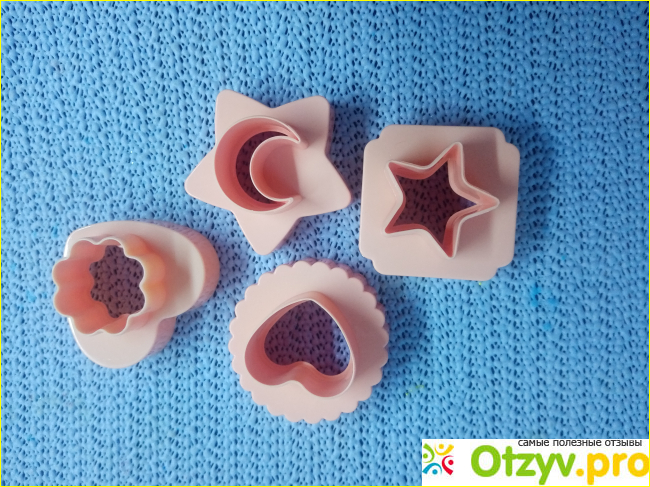А если расположить формочки другой стороной, то получатся маленькие цветочек, сердечко, звездочка и полумесяц. Пластик качественный, ничем не пахнет.