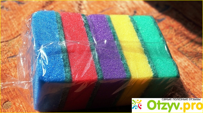 Здесь можно увидеть и желтые, и красные, и синие оттенки. Одной губки мне хватает примерно на 2 - 3 месяца. Товар отлично справляется со своей задачей. Губка превосходно отмывает посуду. Для этого достаточно провести несколько раз по грязной тарелки или кастрюле. Справляется также с пригоревшим жиром и засохшей грязи. Пена смывается быстро. Обязательно после использования я промываю ее чистой водой и оставляю сушиться. Кроме посуды губкой мою также газовую плиту. Стоит такой набор недорого.