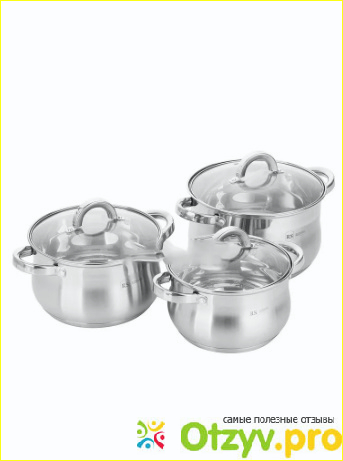Набор кастрюль, о котором идет речь — это три кастрюли разной вместительности, комплект, который необходим на кухне каждой хозяйке.