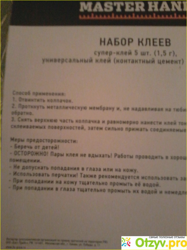 В целом, я оцениваю набор клеев на 4 балла из 5. Универсальный клей оказался плохого качества, но супер-клей имеет отличное качество. Он быстро клеит и стоит недорого. Я рекомендую его к покупке и благодарю за внимание.