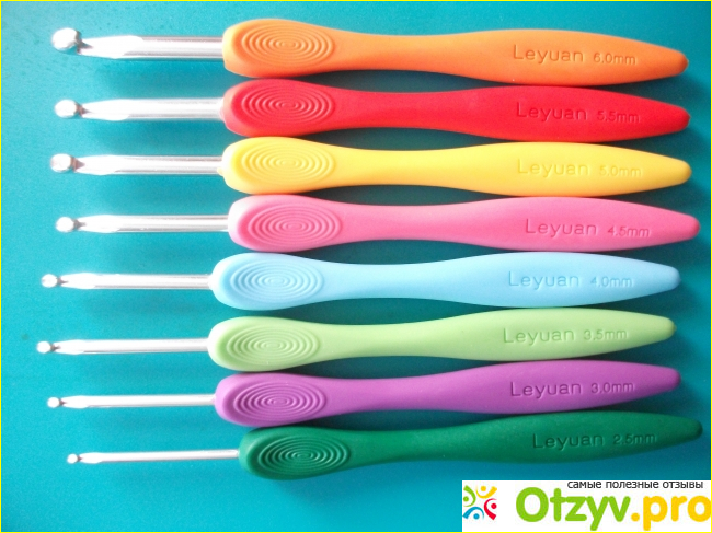 Заикнулась как-то моя супруга, что хочет освоить вязание крючком. На спицах она уже вяжет хорошо. Для начала встал вопрос о инструменте, без которого даже блоху не подкуёшь, как говаривал Левша. А я как раз заказывал кое-что для себя на Алиэкспресс. Вот и заказал и ей до кучи набор крючков для вязания. В наборе их 8, разных диаметров, от 2,5 до 6 мм с шагом в полмиллиметра. Производитель - известная у нас по детским игрушкам фирма Leyuan. Не буду уверять, что таких не найти. Возможно, они есть и в наших магазинах. Наверняка, тоже Китай. Наверняка, в разы дороже. Но не это решало. Не всегда есть желание и время бегать по магазинам. Через пару недель заказ прибыл. На мой взгляд, скажу честно, не профессионала, сделаны добротно. Удобные ручки из разноцветного пластика. Номер у каждого выштампован на ручке. Металл обработан хорошо - нет заусенцев, которые будут цеплять нить.
