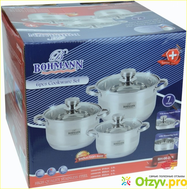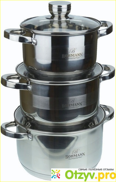Эти кастрюли невозможно было с первого раза отмыть, сначала их надо было залить водой и дать отстояться, и затем уже с трудом отмывать. Я постоянно мечтала о современной и не дорогой посуде, чтоб, когда готовишь еду получать от этого удовольствие. Совсем недавно я гуляла в одном супермаркете и наконец, увидела ту посуду, о которой мечтала. После всех этих не удобств я, наконец, купила в магазине очень хороший и красивый набор кухонной посуды Bohmann BH-06-275. И теперь я с ужасом вспоминаю весь этот кошмар, который связан с приготовлением еды. Я с радостью могу сказать, что не зря я заменила своих помощников. Ведь теперь готовить еду это сплошное удовольствие. После нескольких месяцев использования хочу Вам подробно написать отзыв про мой красивый набор посуды.