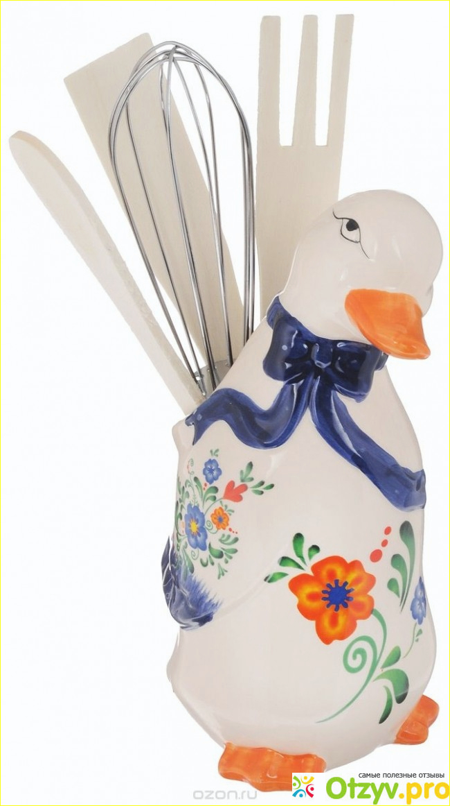 Сам гусь - это керамическая подставка для удобного расположения в нем кухонных предметов. Эти предметы их 5 штук) идут в наборе с гусем: