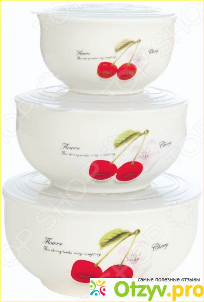 У меня набор белого цвета с красивыми ягодками, вишенки это или черешенки, я так и не поняла до сих пор. Сами мисочки изготовлены их хорошего фарфора, каждая имеет своего размера пластиковую крышку, которая достаточно удобно снимается и закрывается. Каждая мисочка имеет различный объем, это 300 мл, 600 мл и 800 мл. Мисочки подходят для хранения любых продуктов, при этом продукты можно хранить и в холодильнике, и на качество продуктов это никак не будет влиять. В них вы с легкостью сможете разогревать еду в микроволновой печи, также можно легко мыть и в посудомоечной машине. Все три мисочки вместе весят 1120 г, то есть чуть больше одного килограмма, это достаточно легко. Что меня еще удивило, что посуда производится в Австрии и при этом цена набора очень даже приемлемая.