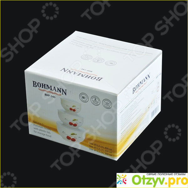 Вот, я случайно увидела такой замечательный набор мисок с крышками. Тем более он замечательно подходил к нашему столовому набору тарелочек, чтобы на столе все смотрелось гармонично. Набор мисок с крышками Bohmann BHP-140 включает в себя три миски, каждая из которых имеет свою пластмассовую крышку. Сами миски мне безумно понравились, особенно тем, что они не пластиковые, а изготовлены из фарфора. В таких мисочках можно даже продукты разогревать и в микроволновой печи, и никакой опасности при этом не возникнет. Также, если у вас есть посудомоечная машина, то такую посуду вы с легкостью сможете там мыть и она не повредиться. В таких тарелочках продукты могут легко храниться в холодильнике и окисляться там они не будут.