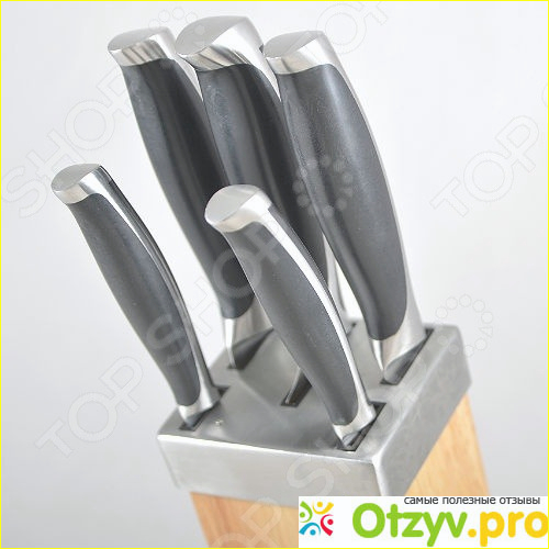 Преимуществом такой модели кухонных ножей является то, что лезвия из нержавеющей стали долго сохраняют заточку,