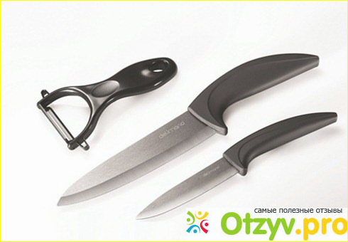 Хочу обратить ваше внимание на набор ножей Delimano Ceramica Nera, который я недавно приобрел для своей кухни. Это набор состоящий из трех совершенно разных по размерам и своим функциональным назначениям ножей изготовленных из циркониевого порошка. Эта нержавеющая керамика производится путем прессования нагретого до высоких температур материала. Окончательная доводка ножей происходит в ручном режиме и это сведетельствует о высочайшем качестве данного вида продукции. Она действительно не уступает обычным металлическим ножам, а по остроте превосходит их за счет того, что может практически в десять раз дольше оставаться максимально острой и работоспособной.