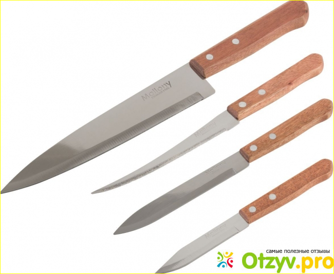 4 ножа с лезвием из нержавеющей стали и деревянной рукояткой — то, что необходимо на кухне каждой хозяйки. Это я заметила с первого дня и вот сколько уже эти ножи служат мне — столько я понимаю: качество, действительно, на всоте.