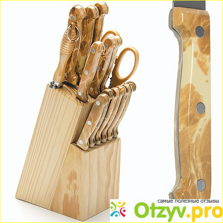 Набор ножей Mayer& Boch MB-24251 состоит из четырнадцати разных по величине инструментов, изготовленных из крепкой нержавеющей стали, это просто гарантирует очень длительный срок службы и, также, очень высокий уровень износоустойчивости, что Вас приятно удивит. Теперь поподробней: материал природный – дерево, экологически чистое, приятное на ощупь, несомненно это большой плюс. Сечение клинка этих ножей клинообразное, а это означает, что режущая кромка будет очень продолжительное время острой. И поскольку благодаря материалу, их лезвия не впитывают никаких запахов, Вы можете наслаждаться естественными вкусами Ваших продуктов, блюд, без характерного металлического привкуса. Также имеется деревянная подставка, которая сохранит Ваше пространство на кухни, ведь ножи будут аккуратно стоять в подставке и быть всегда по рукой, когда Вам нужно готовить для Вашей любимой семьи. Конечно, каждый на кухне хочет чувствовать себя шеф-поваров, и это будет возможно, ведь в этот набор входит нож шеф-повара, длинной двадцать целых и три десятых сантиметра (20,3см). С таким ножом Вы почувствуете себя неподражаемо и захотите готовить эксклюзивные интересные блюда, достойные высокой кухни. Следующий нож хлебный, то есть для того, чтобы резать хлеб, такая же длина - двадцать целых и три десятых сантиметра (20,3см). Большой, удобный нож для хлеба. Ещё один такой же длины нож (20,3 см) – нож для разделки мяса, представьте, как огромным острым ножом Вы разделяете свежее, сочное мясо, чтобы приготовить обалденное блюдо, ведь уже слюнки текут, а с этои ножом будет сделано всё очень быстро и очень качественно. Нож поменьше – длинной пятнадцать целых и две десятых сантиметра (15,2см), созданный для выемки костей из рыбы, ведь это очень серьёзно, рыбной косточкой можно и подавиться, но с этим ножом Вы сможете аккуратно вынуть все косточки, вплоть до самых маленькой косточки. Нож для очистки кожуры, длинной восемь целых и девять десятых сантиметра (8,9см), отлично подходит для чистки овощей и фруктов. Маленький нож – двенадцать целых и семь десятых сантиметров (12,7см), также незаменим на Вашей кухни для разделки и нарезки более мелких продуктов. Существуют целых шесть ножей для разделки стейков по одиннадцать целых и четыре сотых сантиметров (6 штук х 11,4см). Кроме ножей также входят ножницы для зелены, которыми можно аккуратно и красиво нарезать салат или же петрушку. Кроме этого, входит точилка длинной девятнадцать целых и один сотый сантиметров (19,1см), но это больше на тот случай, если Вы забудете и будете мыть ножи в тёплой воде, что противопоказано, ведь мыть ножи нужно только в холодной воде!!! Запомните, это на всю жизнь!!! Имеется специальный дизайн ручки из полипропилена и термопластика, который обеспечит безопасную работу на кухни и комфортное положение в руке, нож не будет выскальзывать и его хорошо мыть.