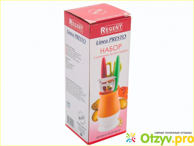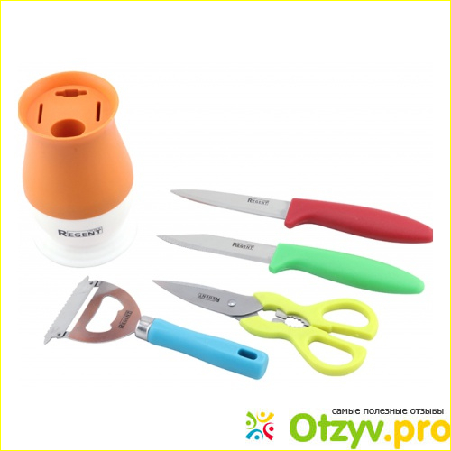 Я решила не заморачиваться с этим вопросам, а доверить его решение профессионалам — взять уже готовый комплект кухонных ножей — набор ножей Regent Presto 93-PP-S5-02. Его производитель обещает, что в нем есть все нужное.
