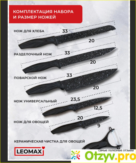 Набор ножей Сила гранита Леомакс — комплект кухонных приборов посуды, состоящий из 5 ножей и овощечистки
