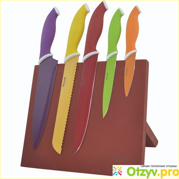 Набор ножей Winner WR-7329 — это не только яркие ручки ножей, но и креативно созданные лезвия: нож имеет свой яркий цвет от ручки до самого кончика острия.
