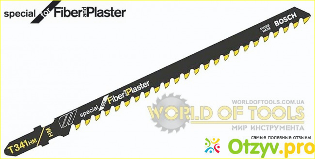 Нам понравилась комплектация этого набора пилок для лобзика Bosch T 341 HM самая простая и общая длина их составляет 132 мм. Муж измерил и сказал, что шаг зубьев у набора составляет 4,3 мм. Пилку мы рассмотрели и увидели, что у неё разветвлённые зубья с твердосплавными вставками и т-образный хвостовик.