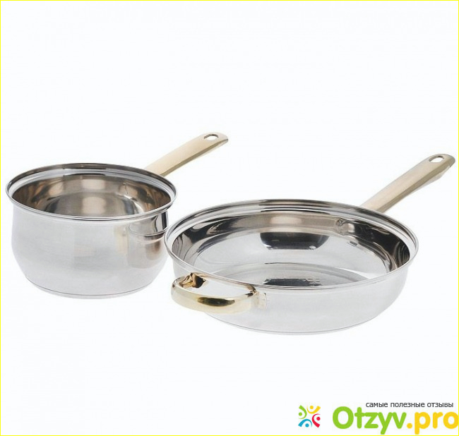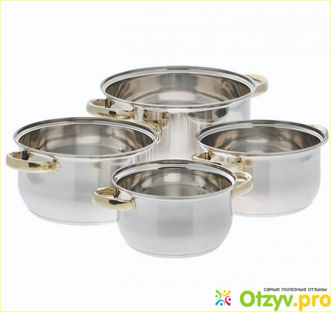 Вся посуда выполнена из нержавеющей стали, которая не испортится со временем. Сталь имеет зеркальную полировку, благодаря чему посуда смотрится стильно и способна стать украшением кухни. Кстати, такая зеркальная посуда впишется в любой дизайн кухни, оживит его и создаст неповторимый облик.
