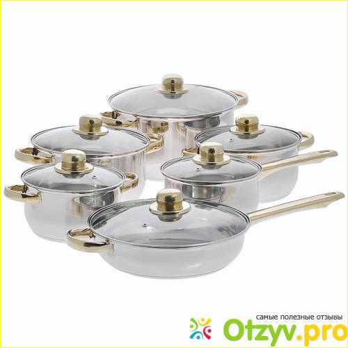 Это качественный комплект современной посуды. Красиво смотрятся на плите и украшает кухню.