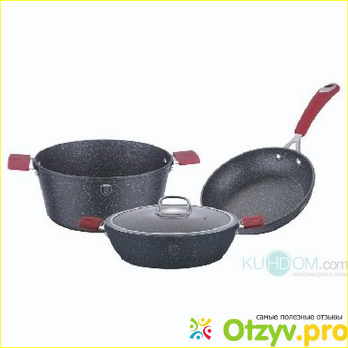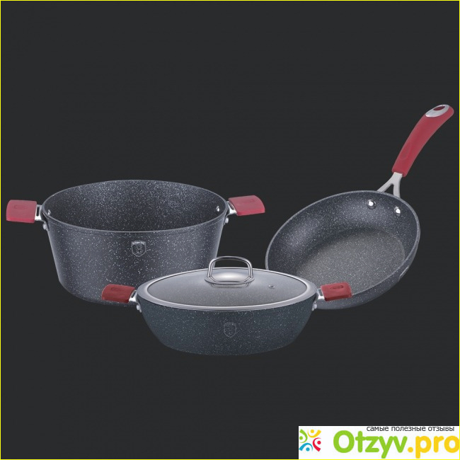 Сам по себе наборы посуды Berlinger Haus BH-1179 Stone Touch не сильно большой и состоит он из четырех разных предметов. А именно с сотейника, о котором я уже давно мечтала, из сковородки, а так же кастрюли. Как раз тем чем я пользуюсь постоянно.