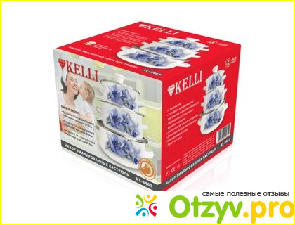 Набор посуды Kelli KL-4461 Ирисы — три небольших, но вместительных кастрюли, украшенные рисунком.