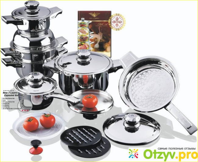Мне принесли большую коробку с набором посуды, она вся блестела своими полированными боками, переливалась на свету, манила и звала к себе. Изучить информацию на сайте не получилось, так как торговая марка Leonardo Milan вообще не имеет официального сайта, что меня несколько смутило и огорчило. Конечно, единственное что меня утешило, что в нашей стране он прошел аттестацию и его официально признали пригодной для готовки и безопасной для здоровья человека. Конечно, дареному коню в зубы не смотрят, что подарили – тем и довольствуйся, тем более, что цена здесь немалая. Но все-таки, ради своего спокойствия я узнала что хотела, хотя бы то, что посуда в составе не содержит вредных соединений и примесей, которые могут выделяться при горении и готовке.