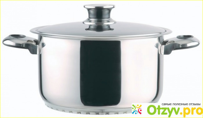 Приборы сделаны из нержавеющей стали, которая не повреждается, не пригорает, устойчива к химическим и механическим повреждениям. Здесь нет антипригарного покрытия, но еда не прилипает к посуде. Дно состоит из многослойных сплавов. Это позволяет кастрюлям равномерно нагреваться на плите и долгое время сохранять тепло по окончанию готовки.