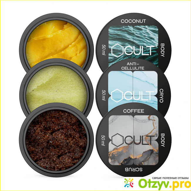 Для знакомства с продукцией бренда CULT3, а точнее с видами его скрабов я заказала себе набор скрабов. Интересно было попробовать каждый из них и уж тогда выбрать какой больше окажется по душе. Баночки в наборе небольшие, хватит всего на несколько использований каждым.