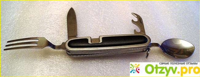 Итак, Набор столовых приборов для пикника 4 в 1 действительно представляет собой набор столовых предметов и включает в себя: нож, открывалку для бутылок, консервный нож, а также ложку и вилку. Этот нож оказался очень востребованным в нашей семье, ведь мы много путешествуем, частенько организуем пикники, то есть ведет активный образ жизни вдали от дома.