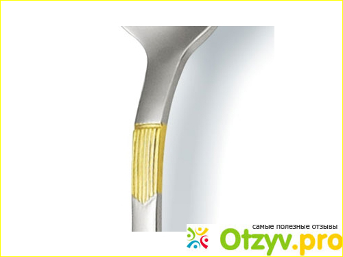 Каждый столовых прибор этого комлекта имеет украшение — небольшое, но значимое. Частичные вставки золотого цвета — некий контраст с обычным материалом и тоном изделия. И такое решение позволяет приборам смотреться интересно и необычно, но в то же самое время скромно и дорого.